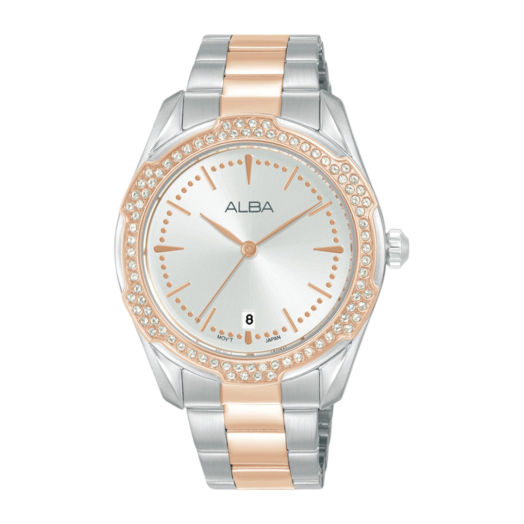 Alba SIGNA Lady White Dial Silver & PG Steel 36mm – Model AG8N30X1