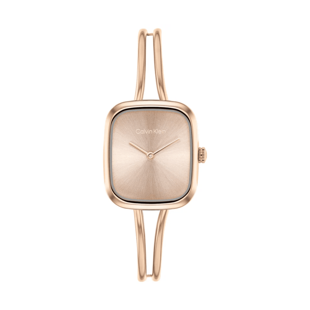 The Calvin Klein 25100133 is a refined women’s dress watch with a slim profile and elegant styling. Featuring a rose gold–toned stainless steel case and bracelet, it carries a minimalist design with a narrow dial and jewelry-style clasp. Designed as a fashion accessory as much as a timepiece, it emphasizes chic sophistication for everyday and formal wear.