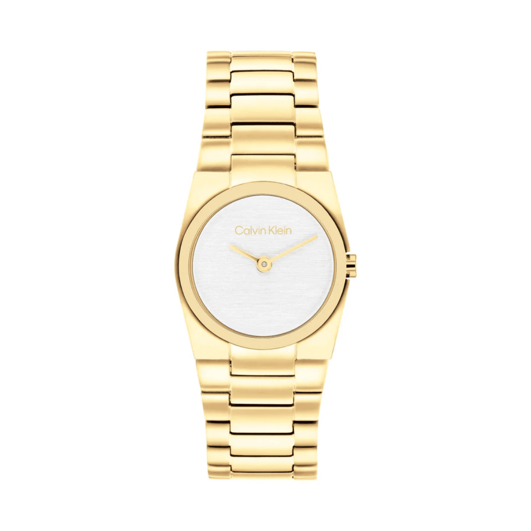 A ladies’ fashion watch designed with clean lines and a refined look. The CK Unite 25100122 features a slim gold-tone stainless steel case and matching bracelet, paired with a white dial. It uses a quartz movement for reliable timekeeping. Its minimalist styling makes it suitable for both everyday wear and more formal occasions.