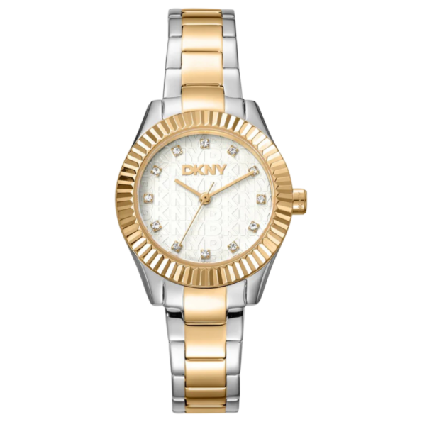 The DKNY Chambers Glitz Women’s Watch – Model DK1L017M0075 showcases a sophisticated design with its two-tone stainless steel case and bracelet. The 40mm round case houses a minimalist champagne dial, providing a clean and elegant look. The watch operates on a precise quartz movement, ensuring accurate timekeeping. Its matching stainless steel bracelet adds durability and style to the overall design. With a water resistance of up to 5 ATM, it is suitable for everyday wear, including exposure to splashes and rain. Ideal for those who appreciate minimalist aesthetics with a hint of luxury, this timepiece seamlessly blends style and functionality.