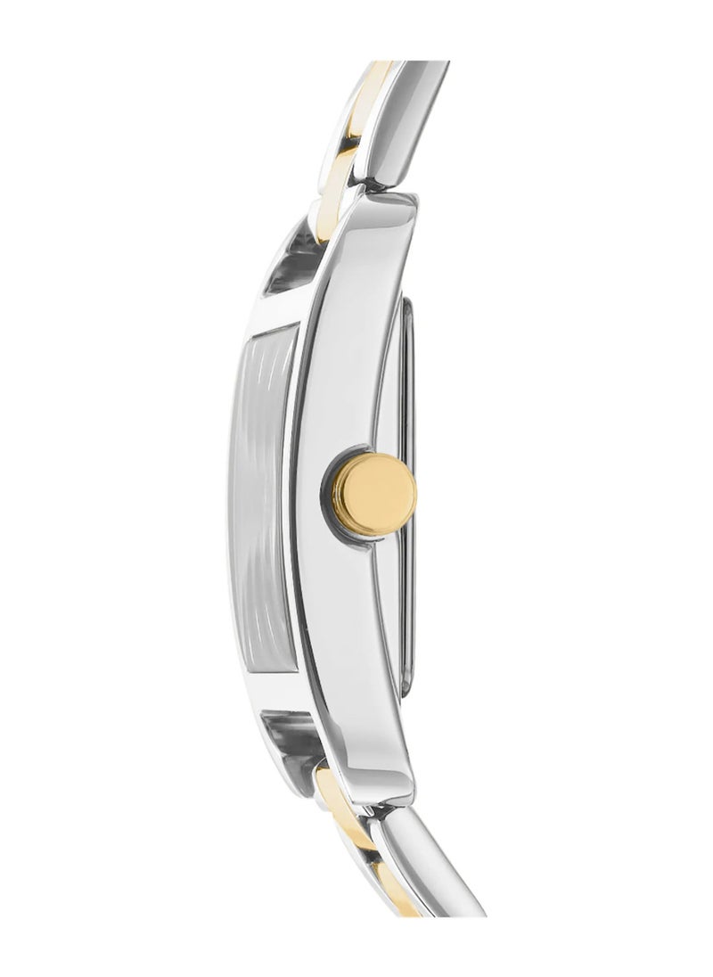 The DKNY City Maxi Women’s Watch – Model DK1L001M0065 embodies contemporary elegance with its unique square stainless steel case measuring 29mm in diameter and 8mm in thickness. The bottle green dial adds a touch of sophistication, while the three-hand quartz movement ensures precise timekeeping. Protected by a durable mineral crystal, the watch is water-resistant up to 3 ATM (30 meters), making it suitable for everyday wear. The stainless steel bracelet, equipped with a fold-over clasp, provides a secure and comfortable fit. This timepiece is a perfect blend of fashion and function, ideal for the modern woman.