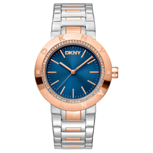 The DKNY Eastside Logo Watch – Model DK1L023M0075 combines elegance and functionality. Its 36mm stainless steel case in a reddish-gold hue houses a precise SEIKO quartz movement, ensuring reliable timekeeping. The midnight blue dial provides a striking contrast, enhancing the watch’s overall aesthetic. The 20mm wide silver-tone stainless steel bracelet with a folding clasp offers a comfortable and secure fit. With water resistance up to 50 meters, this watch is suitable for daily wear, including brief periods of water exposure.