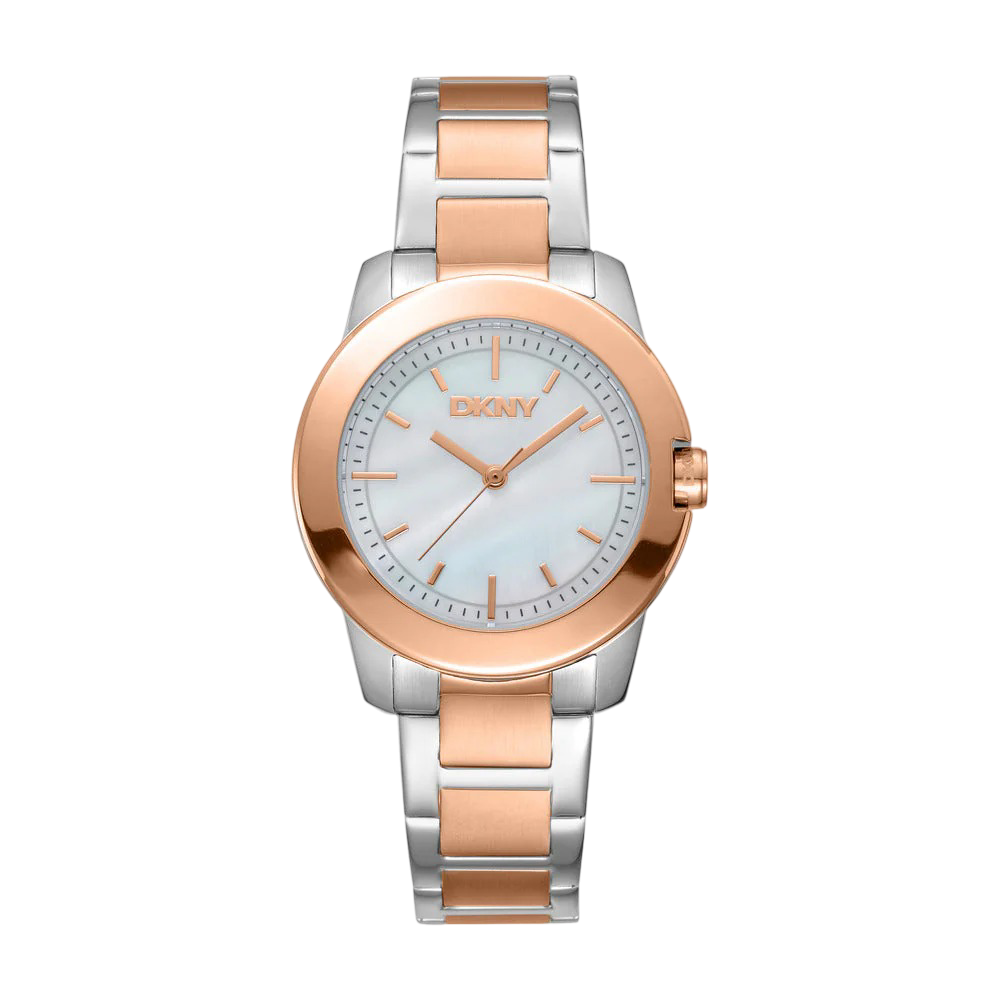 The DKNY Park Ave Midi Women’s Watch – Model DK1L020M0085 offers a chic and modern look with its two-tone stainless steel construction. The 32mm case is complemented by a sleek white mother-of-pearl dial, creating a luxurious and feminine appearance. The watch is powered by a reliable quartz movement and protected by a durable mineral crystal. Its stainless steel bracelet ensures durability and comfort throughout the day. With a water resistance of up to 5 ATM (50 meters), it is suitable for daily wear, including exposure to splashes and rain. This versatile timepiece seamlessly combines elegance with practical functionality.