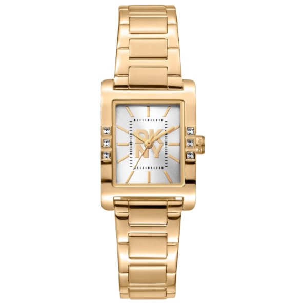 The DKNY Westside Glitz Women’s Quartz Watch – Model DK1L008M0065 showcases a refined design with a silver-grey dial that exudes understated elegance. The dial is housed in a 22mm gold-tone stainless steel case, providing a sleek and modern look. Powered by a reliable quartz movement, it ensures accurate timekeeping. The matching gold-tone stainless steel bracelet adds a cohesive touch to the overall design. Ideal for those who appreciate minimalist aesthetics with a hint of luxury, this timepiece seamlessly blends style and functionality.