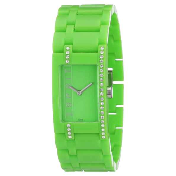 The Esprit Houston Funky Star Women’s Watch – Model ES103562004 is a bold accessory that combines vibrant colors with functional design. Its green rectangular case and matching dial create a cohesive look, while the green rubber strap ensures durability and comfort for everyday wear. The watch is powered by a reliable quartz movement, providing accurate timekeeping. With a water resistance rating of 3 ATM (30 meters), it is suitable for everyday activities like handwashing and light rain exposure.