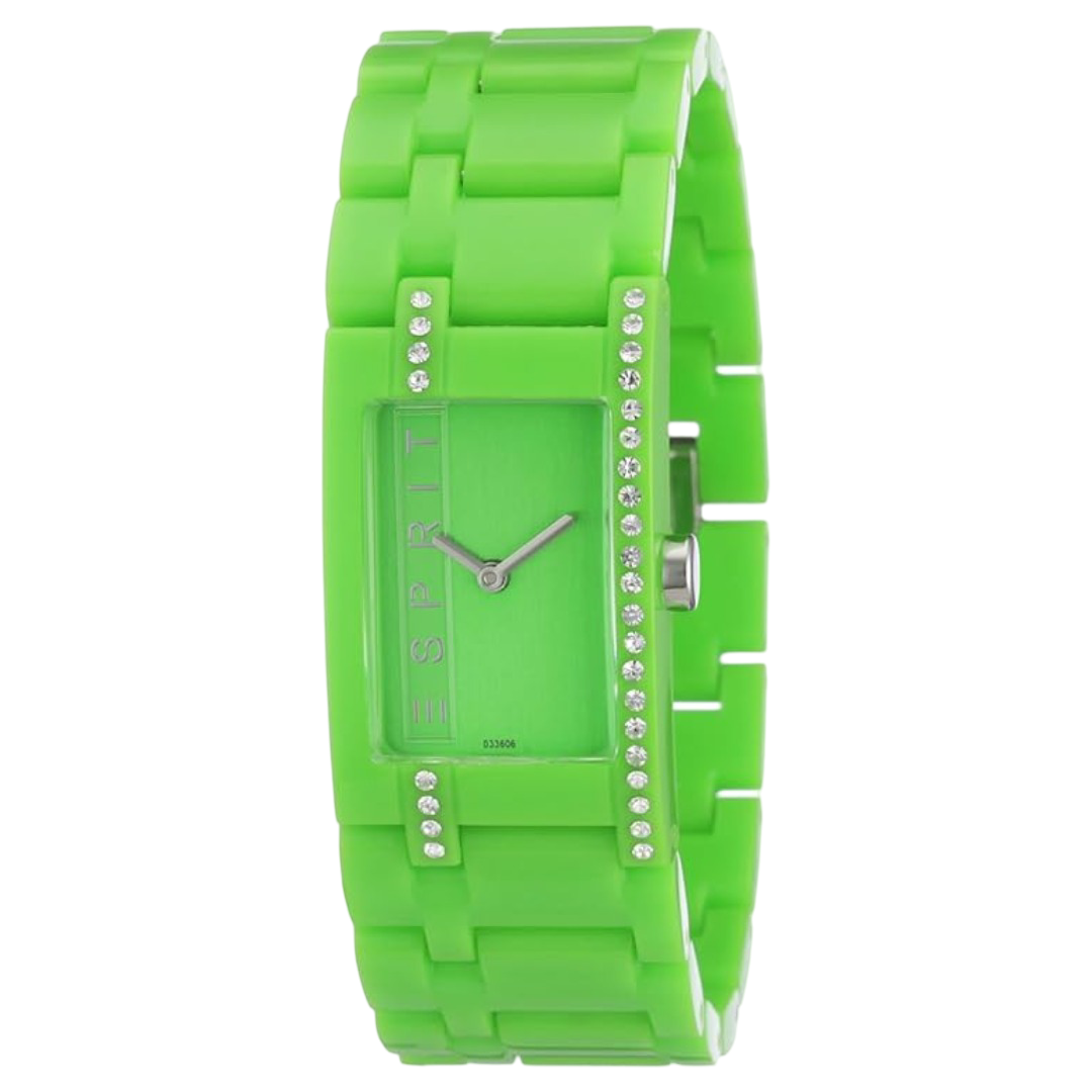 A playful and stylish timepiece featuring a green rectangular case, vibrant green dial, and a comfortable green rubber strap. Designed for fashion-forward individuals, this watch adds a pop of color to any outfit.