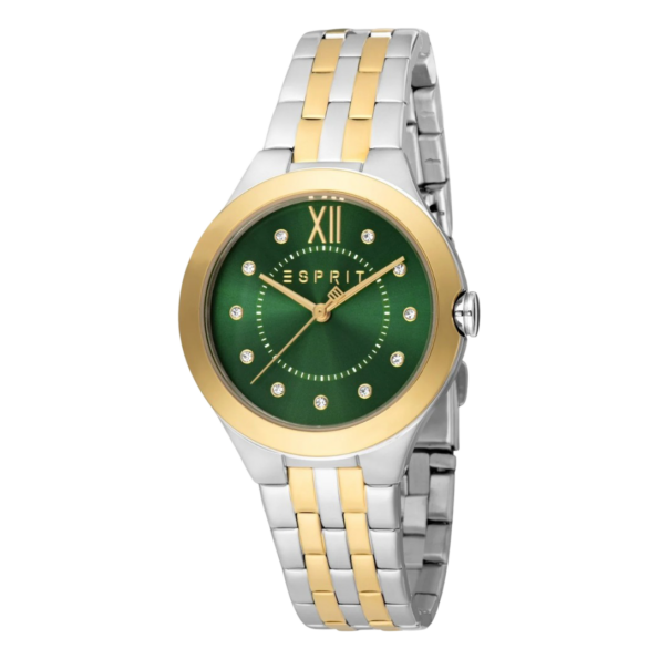Esprit Women’s Two-Tone Silver & Gold Watch with Dark Green Dial – Model ES1L264M1095