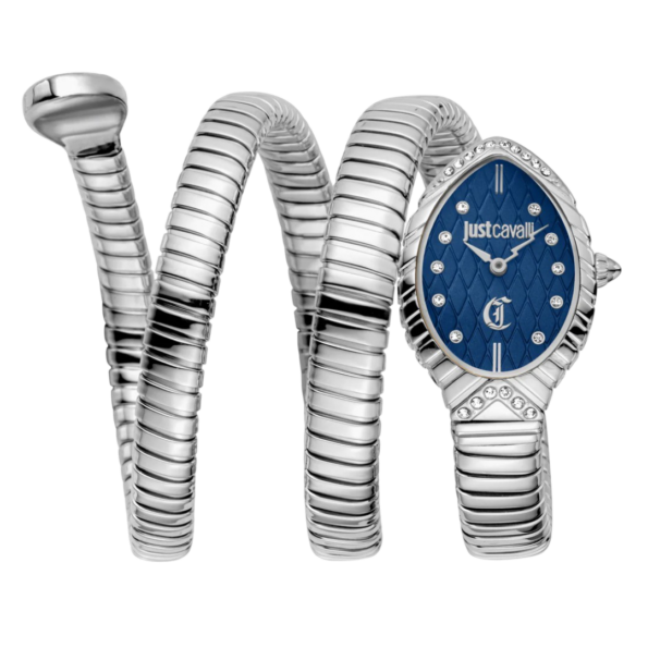 Just Cavalli Women’s Specchio Snake Blue Dial Watch – Model JC1L323M0015