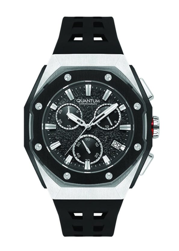 Quantum HNG1170.351 – 40 mm Stainless Steel Quartz Watch with Silicone Strap