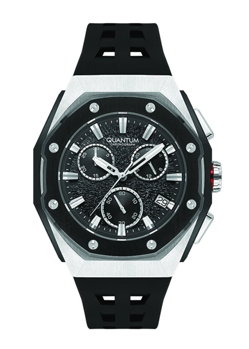 The Quantum Stratos Chrono is a perfect blend of bold design and high-performance functionality. Featuring a durable stainless steel case and a precision chronograph movement, this watch is built for men who demand both style and reliability.