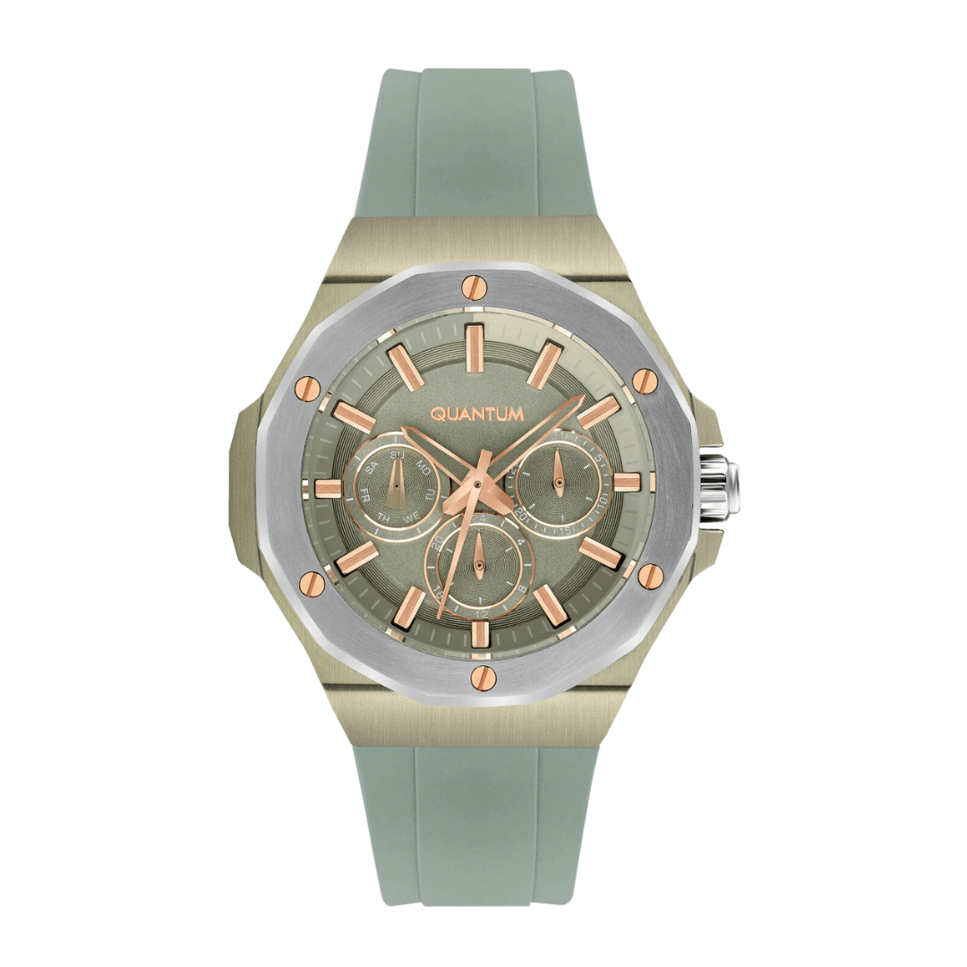 The Quantum Sovereign Dual Time is a refined timepiece that blends luxury with functionality. Featuring a striking rose gold stainless steel case and a bold gunmetal dial, this watch is designed for men who appreciate elegance and precision.