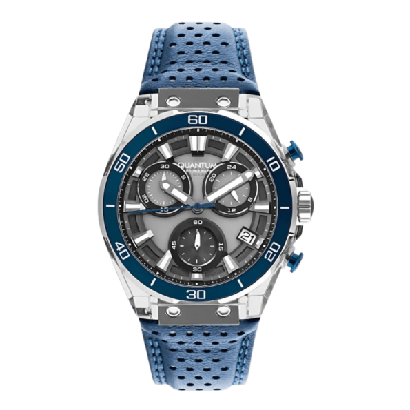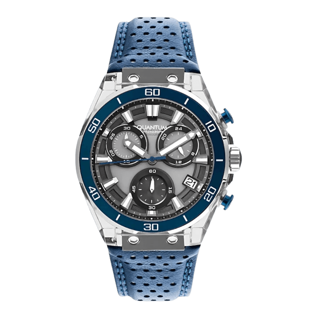 The Quantum Ocean Chronograph is a dynamic timepiece designed for men who appreciate bold style and precision. Featuring a striking blue dial with detailed chronograph subdials, this watch offers a perfect blend of elegance and sportiness.