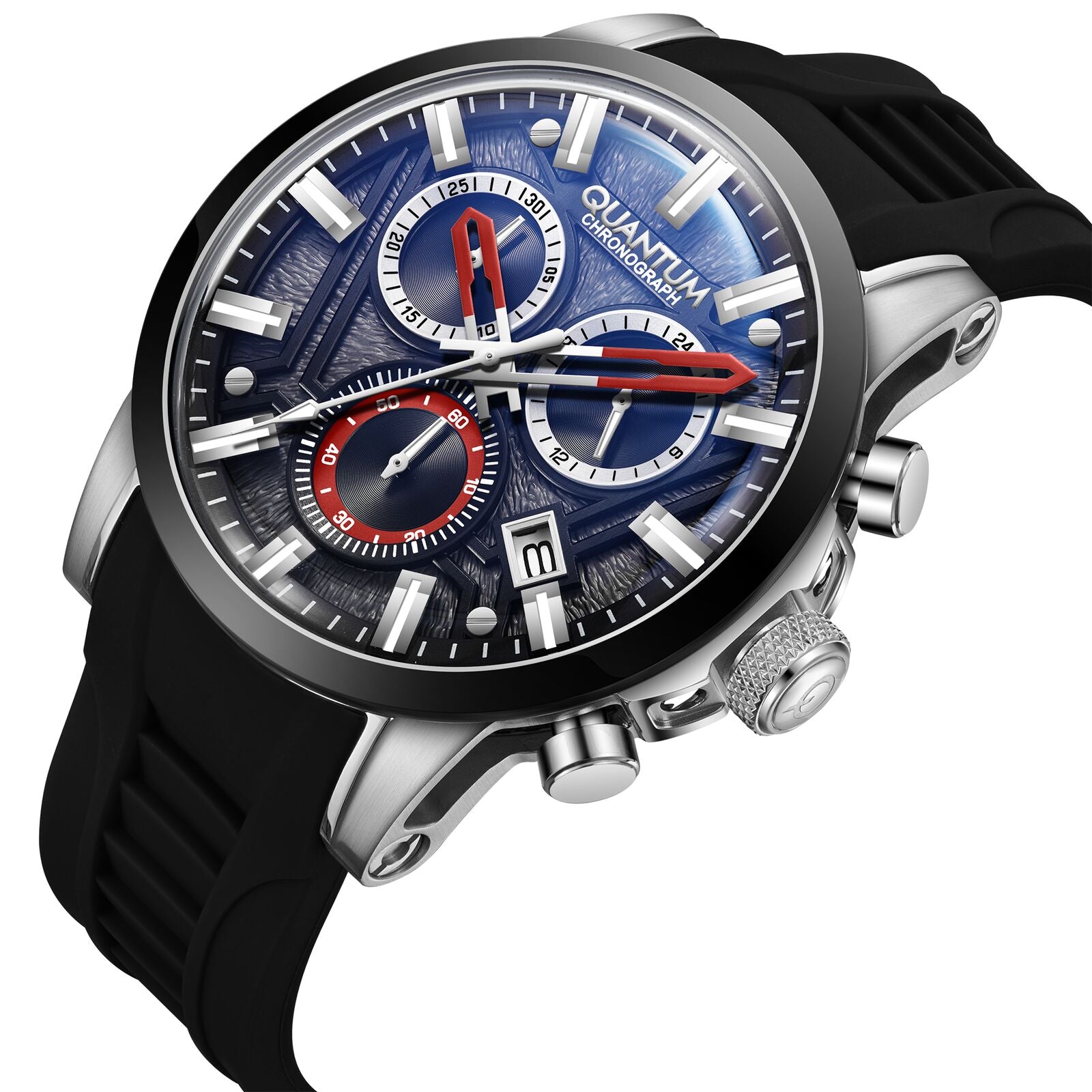 The Quantum Titan Chronograph is a powerhouse of precision and style, designed for men who appreciate bold aesthetics and top-tier performance. Featuring a sleek and sophisticated dial with chronograph subdials, this watch offers both functionality and elegance.