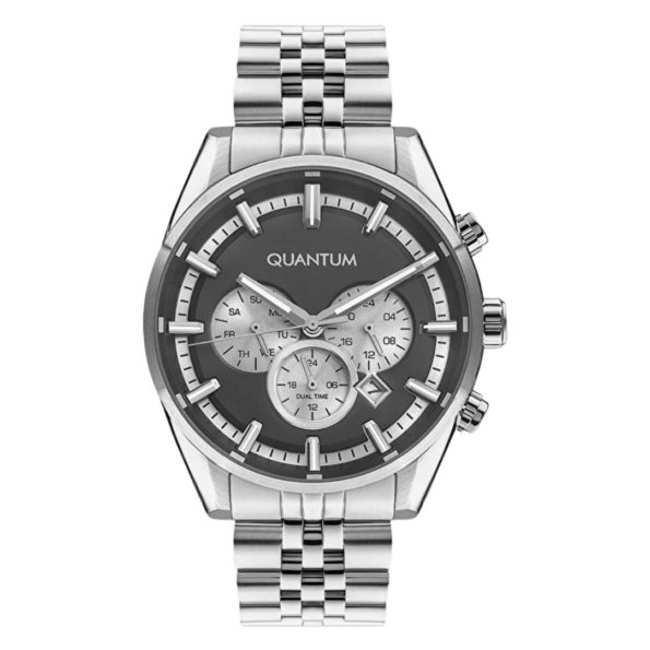 The Quantum Vanguard Chrono is a statement piece designed for men who appreciate precision and elegance. Featuring a durable stainless steel case and a sophisticated chronograph dial, this watch delivers both style and functionality. Its high-precision quartz movement ensures accurate timekeeping, while luminous hands and markers enhance visibility in any lighting. A scratch-resistant sapphire crystal provides long-lasting durability, and the premium stainless steel bracelet offers a secure and comfortable fit. With water resistance up to 10 ATM, this timepiece is built for both business and adventure. Elevate your look with Quantum’s signature craftsmanship.