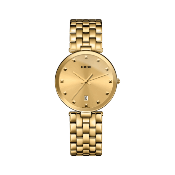 The Rado Florence R48868253 is a refined men’s watch that embodies elegance and Swiss craftsmanship. Its 38mm round case is constructed from stainless steel with a yellow gold PVD coating, offering a luxurious appearance. The champagne-colored dial features minimalist hour markers and a date window at 6 o’clock, all protected by a sapphire crystal with anti-reflective coating. Powered by a reliable quartz movement, this timepiece is both stylish and practical. The watch is water-resistant up to 30 meters, making it suitable for everyday wear. It comes with an original Rado presentation box and a 2-year warranty.