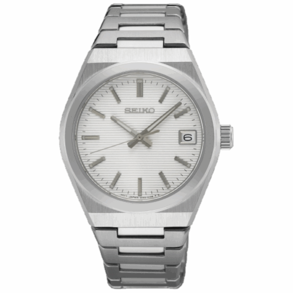 A refined and versatile timepiece, the Seiko SUR573P1 features a crisp white dial, durable stainless steel construction, and a reliable quartz movement, making it ideal for both everyday wear and formal occasions.