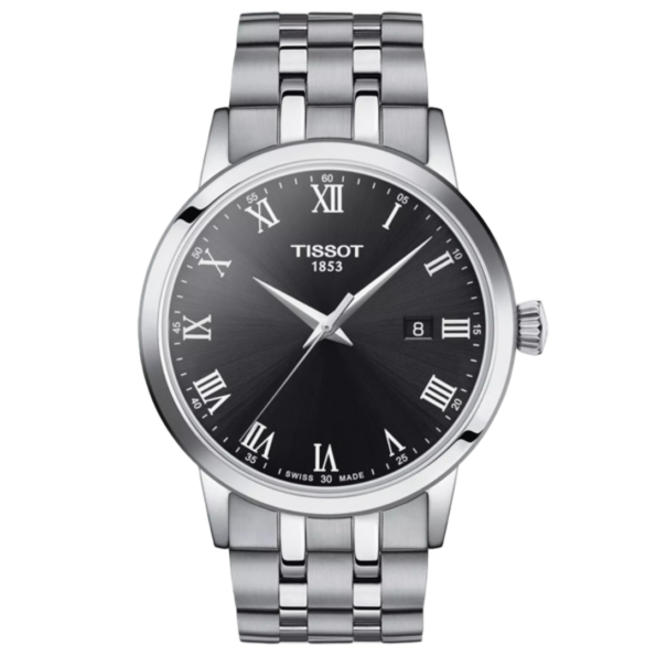 The Tissot Classic Dream is a refined men’s dress watch featuring a 42mm stainless steel case, black dial with Roman numeral hour markers, and a scratch-resistant sapphire crystal. Its timeless design and reliable Swiss quartz movement make it suitable for both formal and casual occasions.