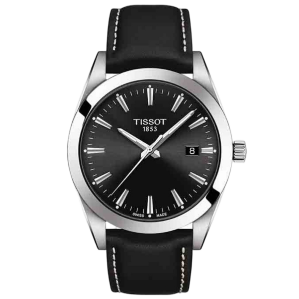 The Tissot Gentleman is a versatile and elegant timepiece designed for the modern man. Featuring a 40mm stainless steel case, a black dial with luminescent hands and index hour markers, and a date display at the 3 o’clock position, this watch is complemented by a black leather strap. Its domed scratch-resistant sapphire crystal and 100-meter water resistance ensure durability for everyday wear.