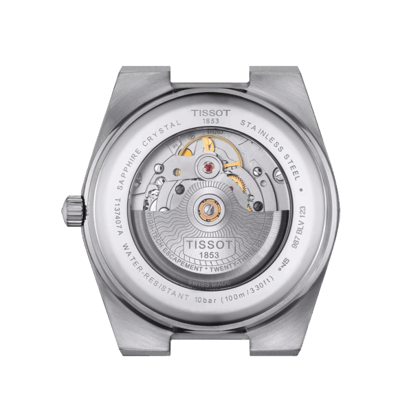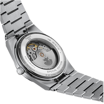 Crafted with a stainless steel case and bracelet, the PRX is built for comfort and durability. A scratch-resistant sapphire crystal ensures clarity and protection, while the transparent case back reveals the intricate automatic movement inside.
