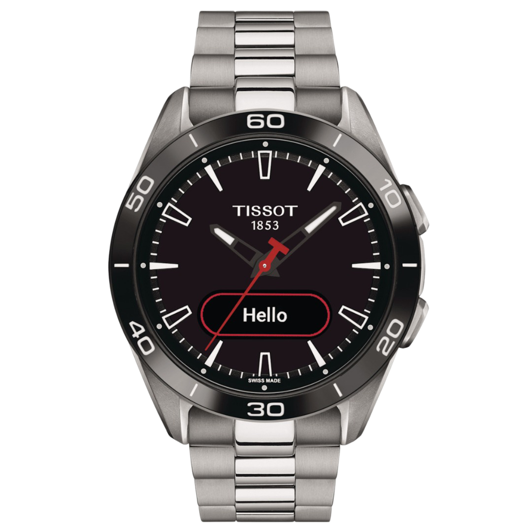 The Tissot T-Touch Connect Sport is a sophisticated timepiece featuring a 43.75mm antimagnetic titanium case, black dial with luminescent hands and indexes, and a tactile scratch-resistant sapphire crystal. This watch combines traditional Swiss craftsmanship with modern technology, offering solar-powered functionality and a suite of smart features.