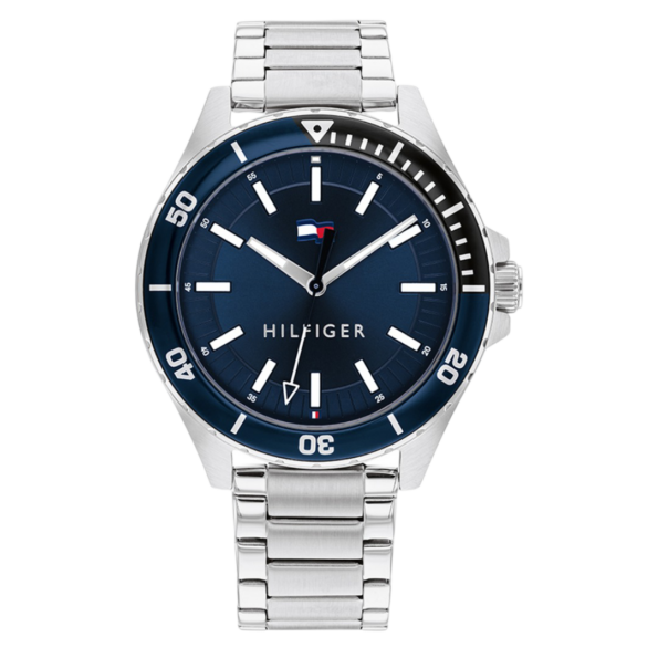 The Tommy Hilfiger Men’s Watch – Model 1792012 features a 43mm silver-tone stainless steel case paired with a matching stainless steel bracelet. The blue dial adds a pop of color, enhancing its contemporary appeal. The watch is powered by a reliable quartz movement and protected by a mineral crystal. With a water resistance of up to 5 ATM (50 meters), it can withstand splashes and brief immersion in water. This watch is a testament to Tommy Hilfiger’s commitment to combining functionality with fashion.