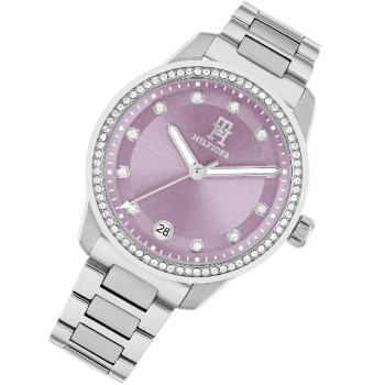 The Tommy Hilfiger 1782793 women’s watch brings a refreshing pop of color to a timeless design. With a soft lavender dial accented by minimalist hour markers and the iconic Tommy Hilfiger flag logo, this watch radiates femininity and sophistication. The silver-tone stainless steel bracelet adds durability and polish, making it perfect for both casual days and elegant evenings.