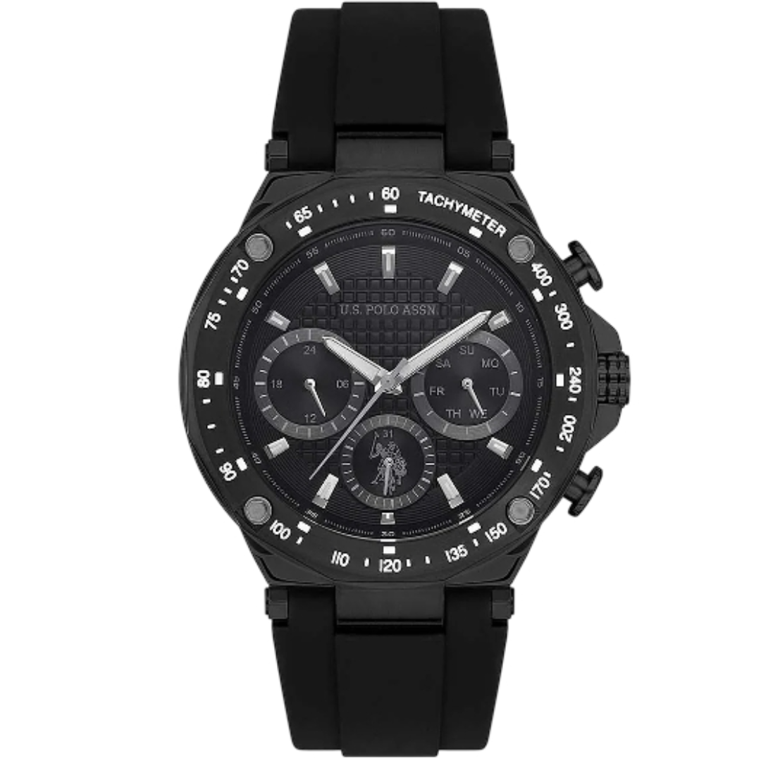 The USPA1076-09 from U.S. Polo Assn. showcases a sophisticated all-black design, ideal for those who appreciate minimalist, modern style. Its 44mm stainless steel case houses a sharp black dial, offering a clean, refined aesthetic. The black stainless steel mesh strap ensures both comfort and visual appeal. With precise quartz movement and 5 ATM water resistance, this watch is designed to perform and impress in equal measure—whether for daily use or special occasions.