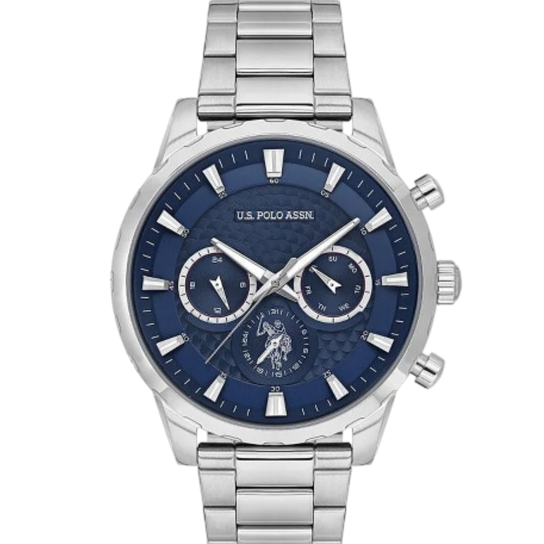 U.S. Polo Assn. Men’s Analog Watch – USPA1055B-02 with Blue Dial & Silver Stainless Steel Bracelet (44mm)