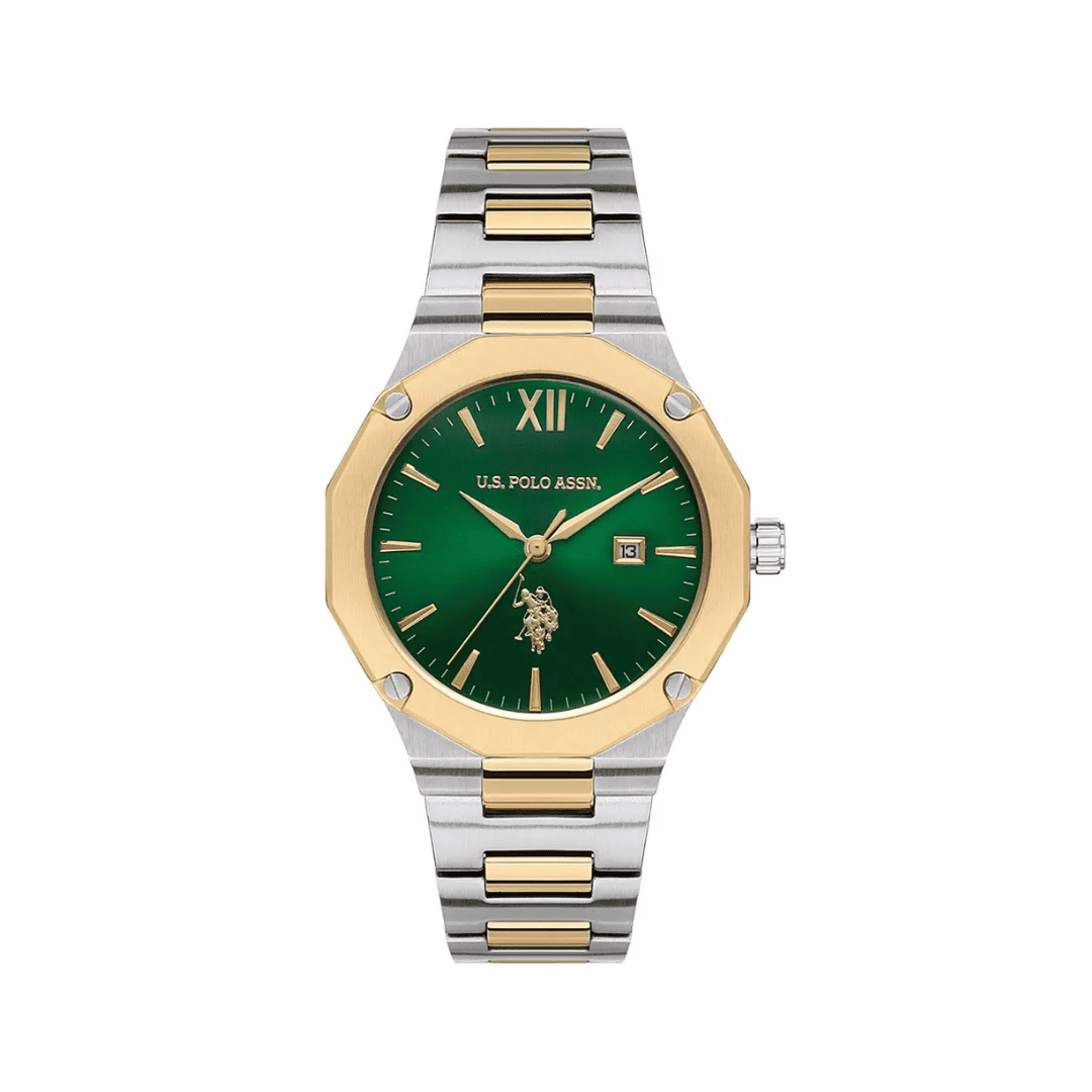 The USPA2063-04 is a stylish women’s wristwatch that combines elegance with everyday functionality. It features a 36mm round stainless steel case with a green dial. The watch is powered by a reliable quartz movement and is protected by a mineral crystal. The two-tone stainless steel bracelet adds a touch of sophistication, making it suitable for both casual and formal occasions. With a water resistance of 5 ATM, it offers protection against splashes and brief immersion in water.