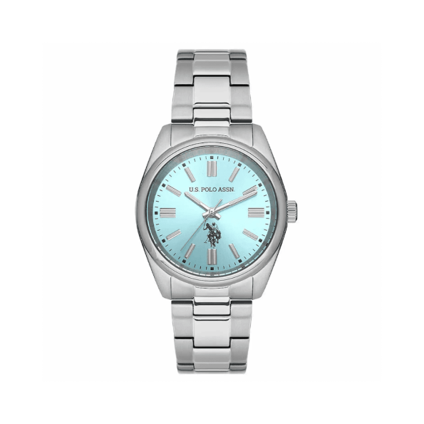 The USPA2068-05 is a stylish women’s wristwatch that combines elegance with everyday functionality. It features a 34mm round metallic gray stainless steel case with a blue dial. The watch is powered by a reliable quartz movement and is protected by a mineral crystal. The matching metallic gray stainless steel bracelet adds a touch of sophistication, making it suitable for both casual and formal occasions. With a water resistance of 5 ATM, it offers protection against splashes and brief immersion in water.