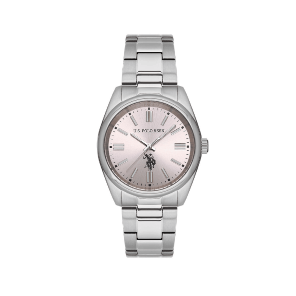The USPA2068-06 blends elegant styling with daily practicality. Its 34 mm round case houses a delicate pink dial, giving it a feminine touch. The matching stainless steel bracelet in metallic gray complements the case, while quartz movement ensures reliable timekeeping. With 5 ATM water resistance, it can withstand splashes and brief immersion in water.