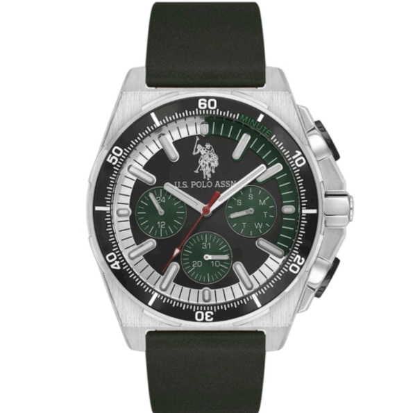 The US Polo Assn. USPA1092-01 Men’s Wristwatch combines classic design with contemporary flair. Its green dial and matching leather strap offer a cohesive and stylish look, while the metallic gray stainless steel case adds durability and elegance. Powered by a reliable quartz movement and protected by a mineral glass, this watch is both practical and fashionable. With a 44mm case diameter and 5 ATM water resistance, it’s suitable for everyday wear and special occasions alike.